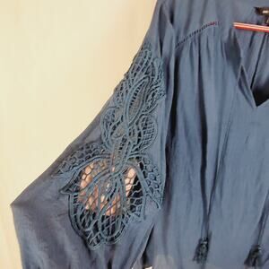 Zac and Rachel Woman blue gauzy crocheted lace skeeve top Size 1X Boho Peasant