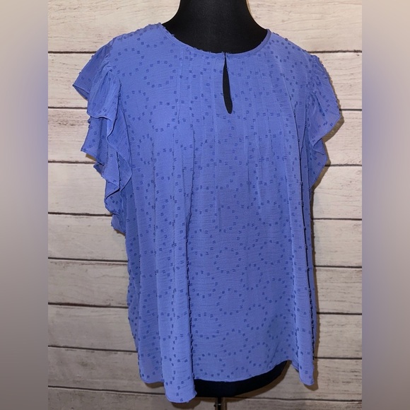 ✨ Step out in style with this stunning Zac and Rachel shirt in a gorgeous shade of cobalt blue (or periwinkle blue)! This extra-large top features charming flutter sleeves and is fully lined, making it both comfortable and chic.