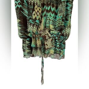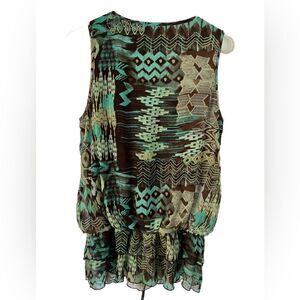 Zac and Rachel sleeveless top with beautiful embellishments on the V Neck. Gathered at the waist with a tie.