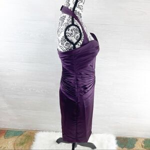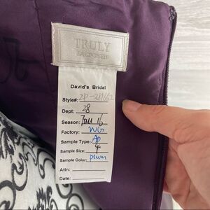 Zac Posen Truly sweetheart dress size 4. Plum purple satin/silk material. Sweetheart neckline and halter straps. Pintuck details with a corset bodice and bodycon Silhouette. Discreet back zipper closure. No holes or stains, was a sample for David’s Bridal.