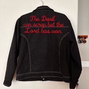 Zach Bryan ‘Devil Can Scrap’ black denim jacket size S unisex