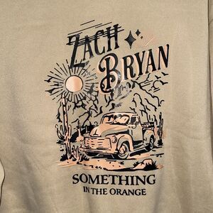 Zach Bryan XS Nude Black Orange Graphic Fleece Interior Crew Pullover Sweatshirt