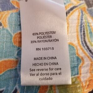 Zach & Rachel Orange Blue Green Floral Long Sleeve V-Neck Popover Blouse 1X