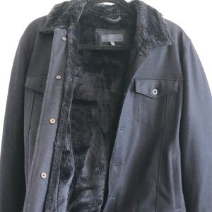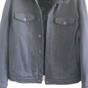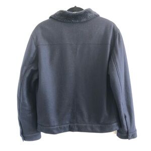 Zachary Prell Faux Fur Lined Trucker Jacket in Navy Blue
