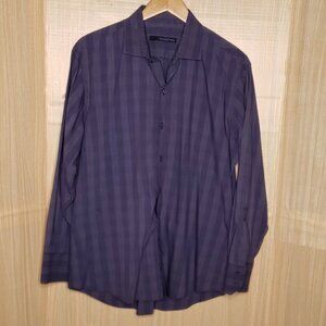 Zachary Prell men’s blue stripe check long sleeve button down shirt medium. Gently used condition. Measurements are: 23 ½" sleeve, 26” from shoulder to hem, and 23” from armpit to armpit.