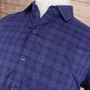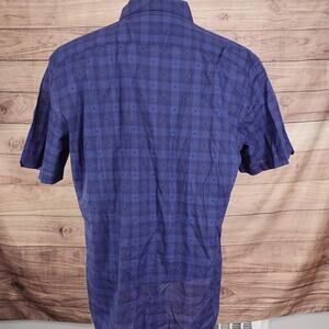 Zachary Prell Shirt Mens XL Blue Short Sleeve Button Front Cotton Plaid Casual