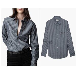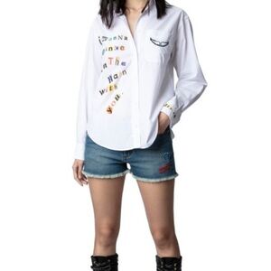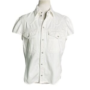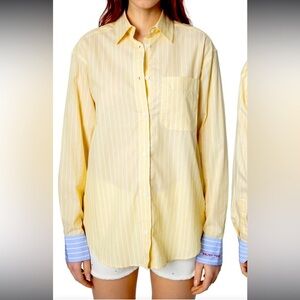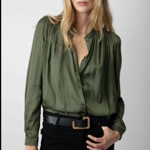 Zadig & Voltair Beige Gauze Henley Top LARGE Crinkle otton Designer $158