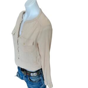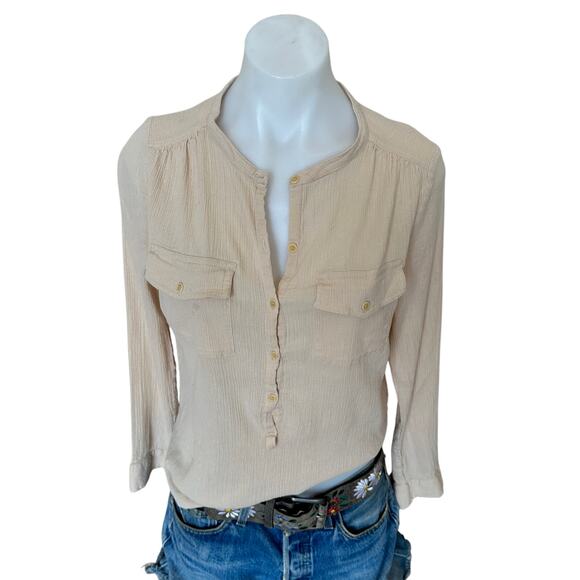 Zadig & Voltair Beige Gauze Henley Top LARGE Crinkle Cotton Designer $158