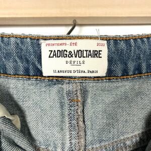 Zadig & Voltaire 40/Medium Denim Distressed Medium Wash Juice Mini Jean Skirt