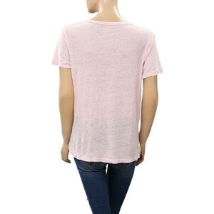 Zadig & Voltaire Atal Lin Solid T-Shirt Blouse Top Henley Pink Causal M 221937