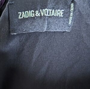 Elegant black blouse with subtle purple trim. V-neck design. Short sleeves. Perfect for any occasion.