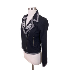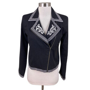 Zadig & Voltaire Black Embroidered Zip Jacket Size XS Statement