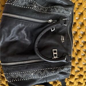 Stylish black leather shoulder bag. Features silver hardware and studded details. Perfect for versatile wear. Probably only wore it once or twice, it’s in perfect condition.