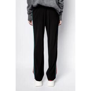 Zadig & Voltaire Black Poeme Rainbow Stripe Straight Leg Track Pants 34 XS