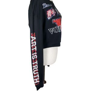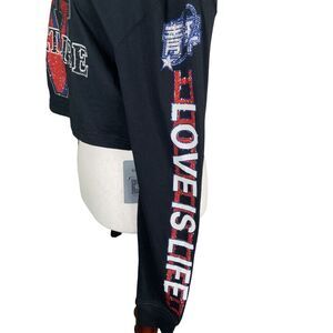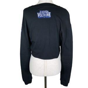Zadig & Voltaire Black Rhinestone Embellished Cropped Sweatshirt Size XS