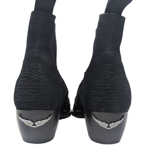 Chic black booties with unique textured design. Perfect for versatile styling.