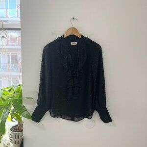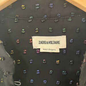 Zadig & Voltaire Black Twin Mousseline Sparkle Long Sleeve Blouse Size XS