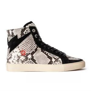 Zadig & Voltaire Black and Cream Snake Print Sneakers