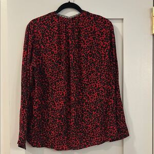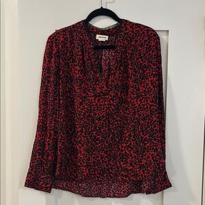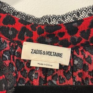 Zadig & Voltaire Black and Red Leopard Print V-Neck Blouse, Size Medium