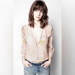 Zadig Voltaire Blouse Tygg Print Glam Rock Ruffles Star Burst Floral S NWT