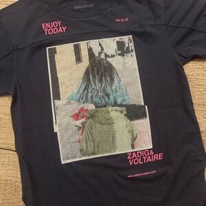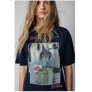 Zadig & Voltaire Bow Photoprint Strass T-Shirt- XS,S,M