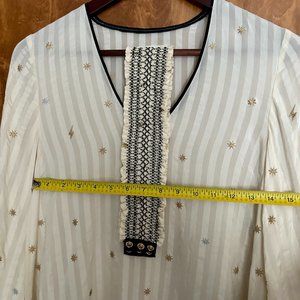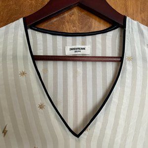 Beautiful, sheer striped tent dress with gold embroidered stars from Zadig & Voltaire.