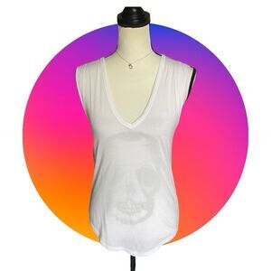 Zadig & Voltaire Brooklyn Strass White Skull Cotton Tshirt Sleeveless Top XS 0 2