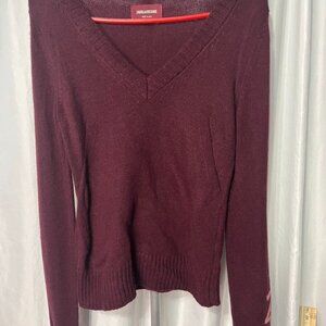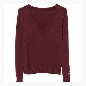 Zadig & Voltaire Burgundy V-Neck Sweater Italy – Monogrammed Sleeve (Est. Small)