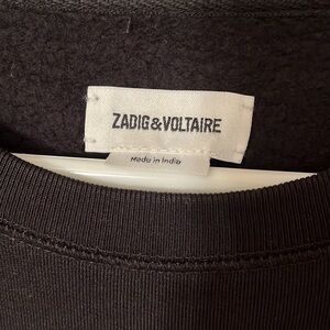 About the brand: Zadig & Voltaire is a modern and edgy brand that plays with ambiguity in all areas of life. Based in Paris, the brand prides itself on individuality and self expression. Pulling inspiration from literary and art icons through the ages, Zadig & Voltaire embraces strength and inclusivity. Camo Rock Strass Sweatshirt in noir with raglan sleeves and ribbed trim.