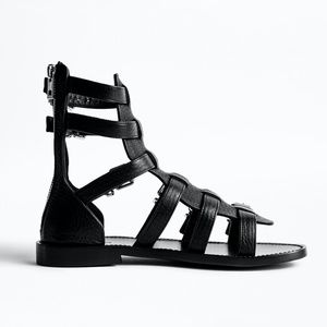 Zadig&Voltaire women's black leather gladiator-style sandals with metal coin detail. Made in Italy.