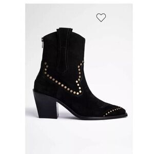 * Zadig & Voltaire Cara Black Suede Western Cowboy Studded Ankle Boots Sz 11 $798