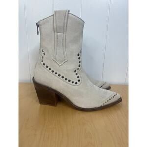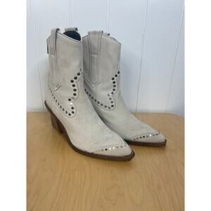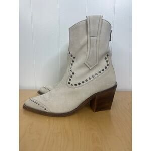 Zadig & Voltaire Cara High Suede Studded Western Boots in Cream Size 40