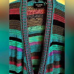 Zadig & Voltaire Cardigan Metallic Long Duster Sweater Pockets Small Medium EUC