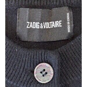 Zadig & Voltaire Cashmere Cardigan Sweater Women’s Sz S Black Rhinestone Stars