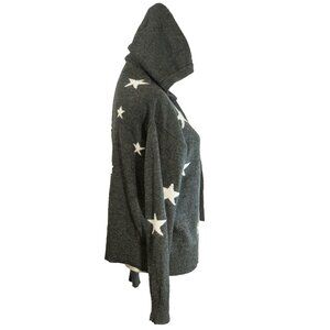 Zadig Voltaire Cashmere Star Hoodie Sweater Marky Intarsia Wool Luxury Pullover, size small. This Zadig & Voltaire hoodie is a grey cashmere sweater with whimsical star print that is 90s style celestial with a modern edge.
