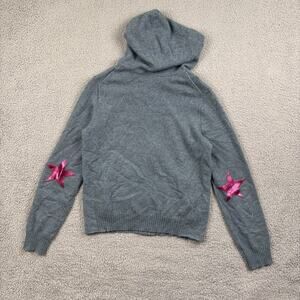 Zadig & Voltaire Cashmere Sweater Womens Small Blue Cassy Star Patch Zip Hoodie