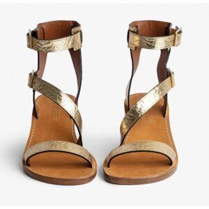 Zadig & Voltaire Cecilia Crinkled Caprese Sandals in Gold 37/ US 6
