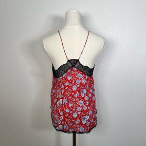 Zadig & Voltaire Christy Silk Camisole Red with Blue Flowers - Size S