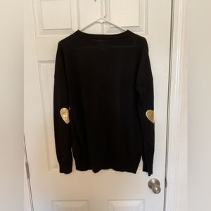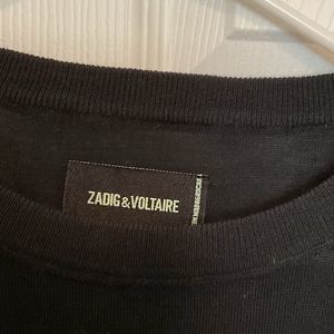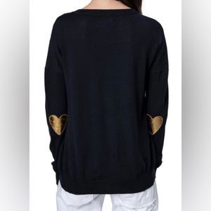 Zadig & Voltaire Cici Black Merino Wool Heart Patch Crewneck Pullover Sweater L