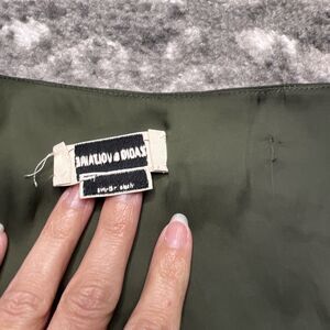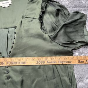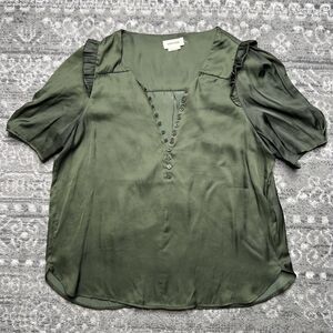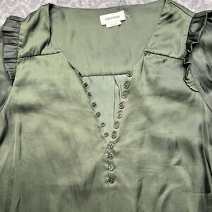 Zadig & Voltaire Dark Green Twity Satin Blouse Medium Button Detail Puff Sleeves