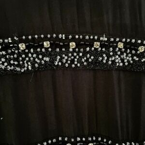 Good preowned condition. Repaired rip at left armpit, missing jewel at hem in front.
