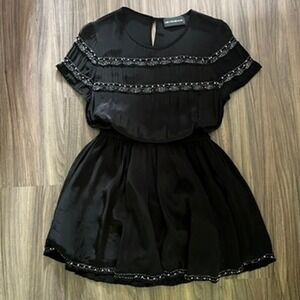 Zadig & Voltaire Deluxe Jeweled Beaded Short Sleeve Mini Dress Black size small