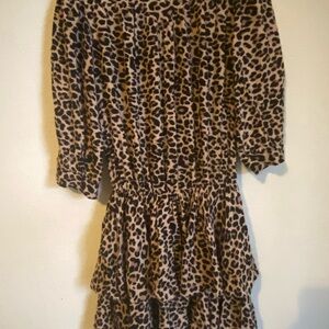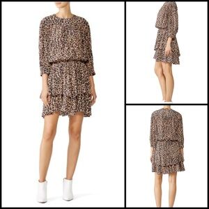 Zadig & Voltaire Designer Rooka Leo Leopard Profeint Tiered Ruffle Hem Dress XS