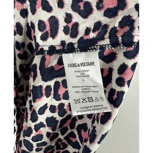 Zadig & Voltaire Dress Rivali White/Pink Leopard Print Size Large Mock Neck Mini