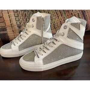 Zadig & Voltaire Flash Hi-Top Silver Glitter Sneaker FR Size 36 US 5 Retail $448