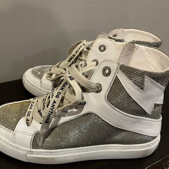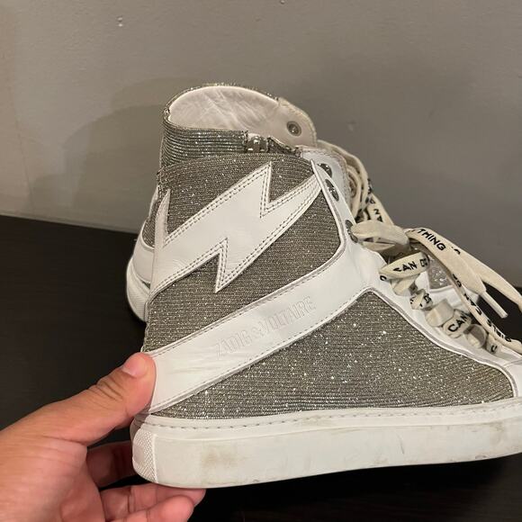 Zadig & Voltaire High Flash Sparkle Sneaker Silver Size 37 US 6