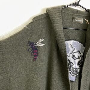 Zadig & Voltaire Inna Cashmere Cardigan Sweater Green Womens Embroidered Skull