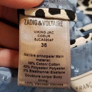 off-white & black all over amazing heart design with "zadig" writing amongst the hearts notch collar EXCELLENT USED CONDITION!!! no rips, no stains