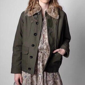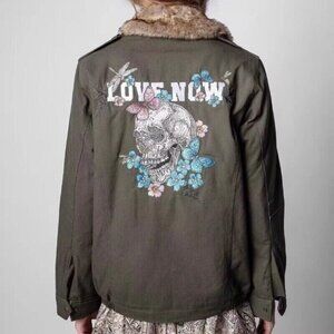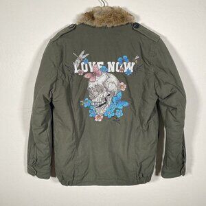 Zadig & Voltaire Jacket Size S Skull Butterfly Embroidered Fur Collar Kid Parka