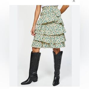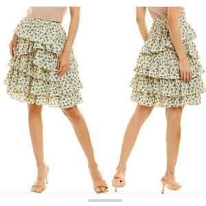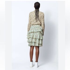Zadig & Voltaire Joker Print Floral Tiered Ruffle Pencil Skirt Size 36 New